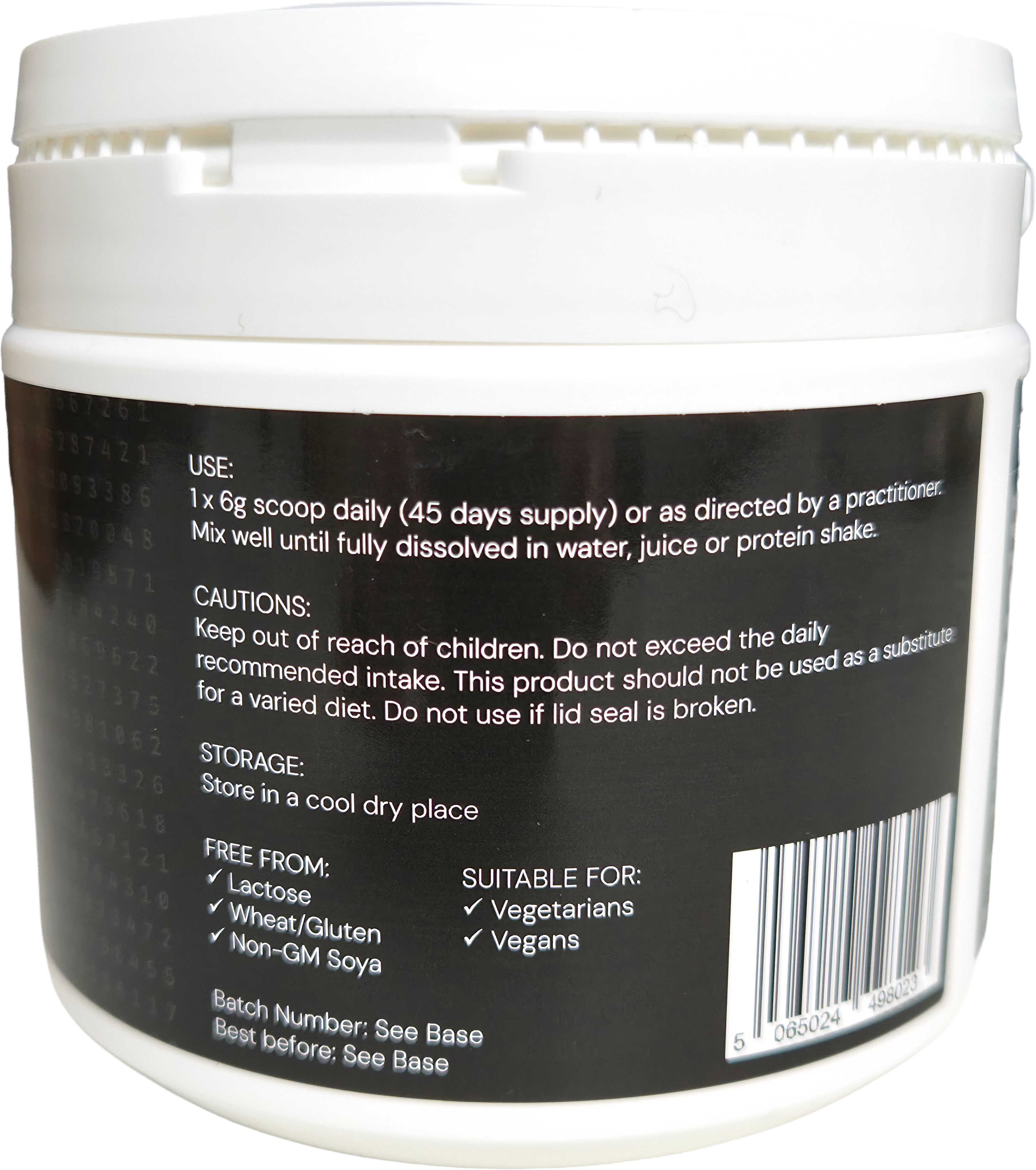 - Usage | Use 1x6g scoop daily (each container is 45 days supply) or as directed by a practitioner. Mix well in water, juice or protein shake.